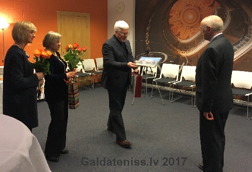 Egilu Puriņu 70 gadu jubilejā sveic Aldons Vrubļevskis (Latvijas Olimpiskās komitejas prezidents), 28.02.2017.
