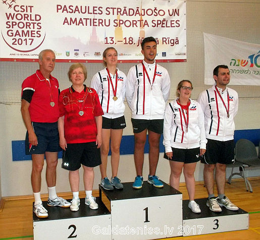 Dubultspēļu sacensībās, Latvijas sportisti ieguva sudraba medaļas sieviešu dubultspēlēs - Lidija Kalniņa un Irina Paščenko, vīriešu dubultspēlēs 4.vieta - Sergejs Kuceba un Ramūns Mineiķis, sudraba medaļas tika izcīnītas arī jauktajās dubulspēlēs - Juris Siliņs un Lidija Kalniņa, vēl jāpiemin arī bronzas medaļu ieguvēji - LEPSE Ieva LAT - KARAM ZADEH Farzaneh IRI. Līdz ar šo 5. CSIT Pasaules strādājošo un amatieru sporta spēļu galda tenisa sacensības ir noslēgušās. Vairāk skatiet vienspēļu un dubultspēļu rezultātus: CSIT World Sports Games 2017 - Singles and Doubles Results.