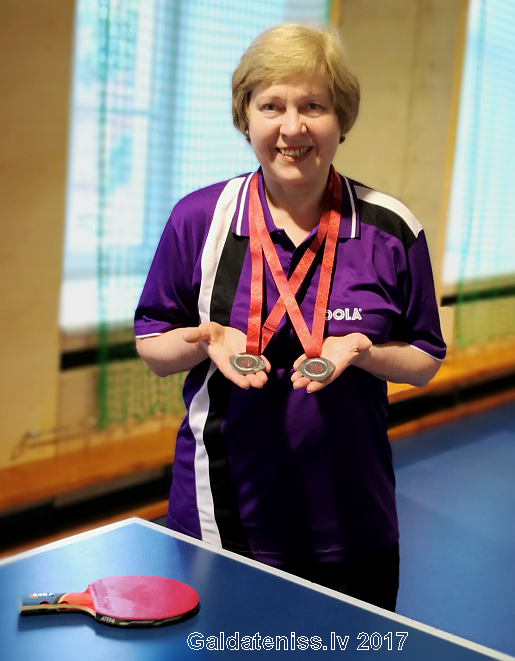 Fotogrāfijā - Lidija Kalniņa, sudraba medaļniece sieviešu un jauktajās dubultspēlēs.