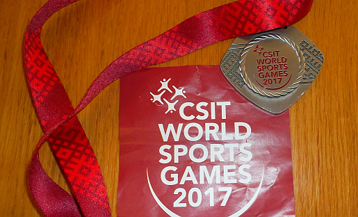 Vienspēļu sacensībās, no Latvijas sportistiem savā vecuma grupā, augsto 3.vietu izcīnīja Juris Siliņš, bet sievietēm jāatzīmē Ieva Vēja, kura ieguva 4.vietu. Vairāk skatiet vienspēļu sacensību rezultātus: CSIT World Sports Games 2017 - Singles Results.