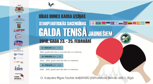 Starptautiskās sacensības galda tenisā jauniešiem “Rīgas domes kausa izcīņa” 2018