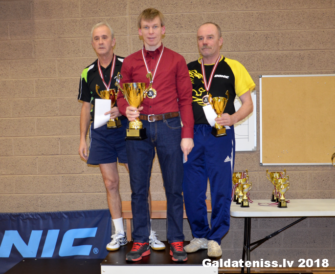 Veterāniem 50+ grupā 1.v. Antti Luigemaa, 2.v. Juris Siliņs, 3.v. Anrijs Bergs.