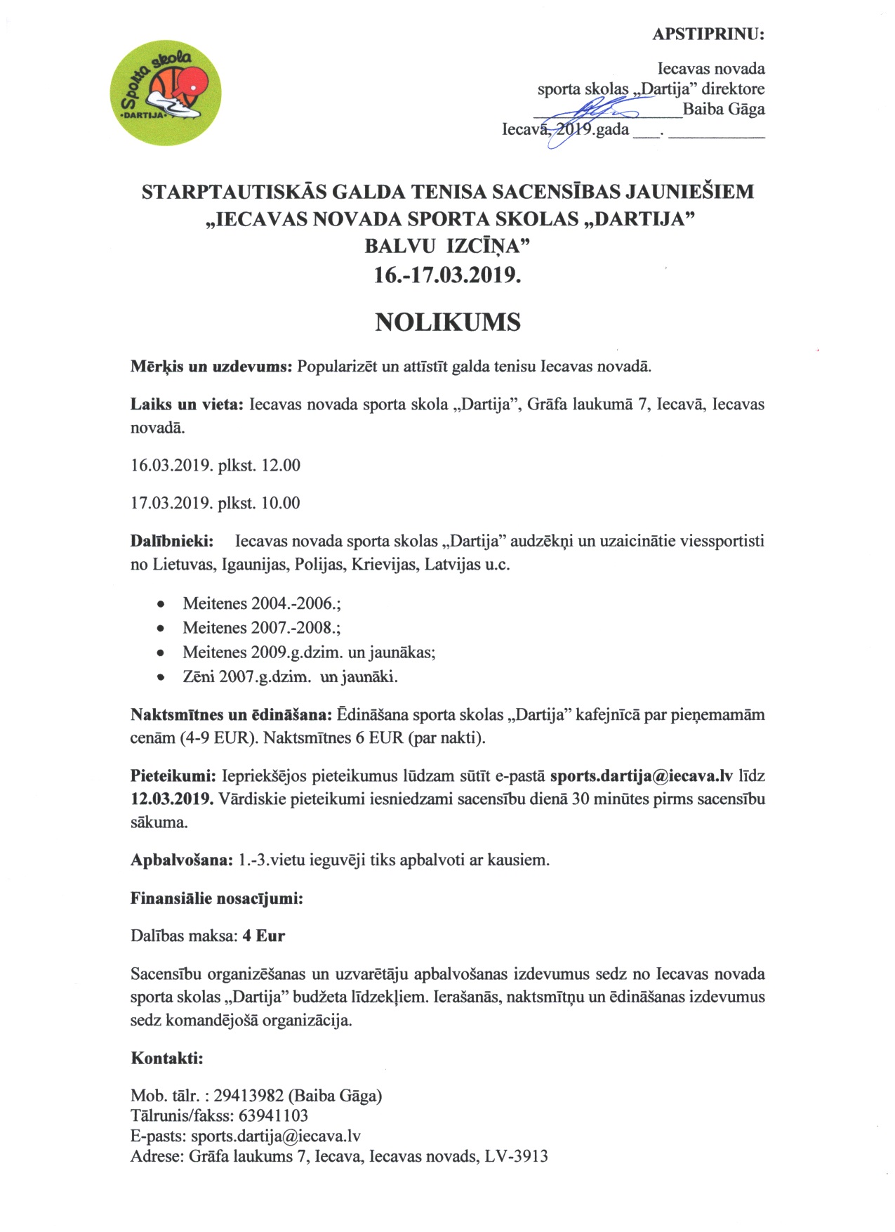 | 11 | 16.03.2019 | 17.03.2019 | Iecavas novada sporta skolas "Dartija" starptautiskās sacensības jauniešiem | Iecava | LAT | INFO |
